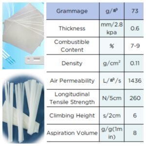 Applications: Fiberglass membranes are utilized within the structure of test strips as sample pads, conjugate pads, and bridge pads.
