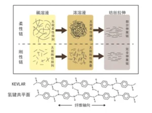 The macromolecular chains form a cross-linked network structure through hydrogen bonds. The main molecular chain arrangement is regular, highly oriented along the fiber axis, and has high crystallinity. During the spinning process, the chain structure can be extended to achieve a high modulus.
