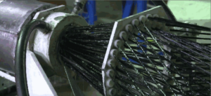 After applying a suitable sizing agent, the drawn basalt fibers pass through a bundler and fiber tensioner, and finally to an automatic winding machine.